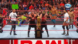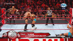 Pero cuando Gable y Roode van a aplicar su remate, Roode es arrojado fuera del ring mientras que Gable es finiquitado por los grandulones.