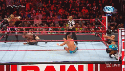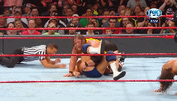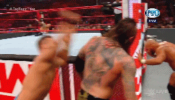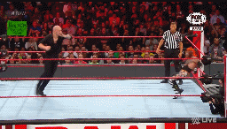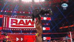 Mysterio saca del ring a Corbin con unas tijeras, pero cuando se lanza en tope es detenido en el vuelo.