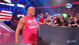 Al final de la primera hora, llega Kurt Angle. Ya no luchará con Rey Mysterio como se esperaba; sólo hablará con los fans.