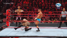 Braun Strowman enfrenta a los dos luchadores que le señalaron EC3 y Tyler Breeze. Básicamente los ejecuta.