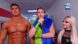 En backstage, Alexa Bliss está con EC3 y Tyler Breeze. Éstos dos dicen que Michael Che y Colin Jost son muy divertidos, pero llegan Braun Strowman y niegan todo. «Fueron esos dos de allá», dicen.