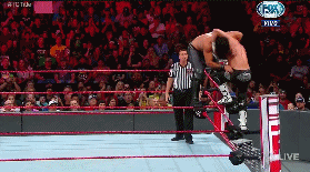 Rollins saca del ring a Ziggler, pero no puede lanzarse en tope debido a que la pierna se le ha resentido. Decide bajar para perseguirlo.