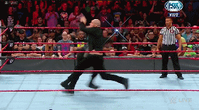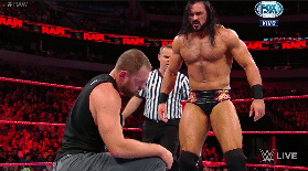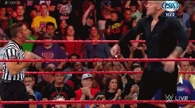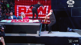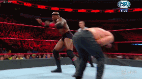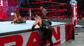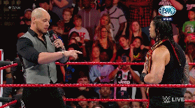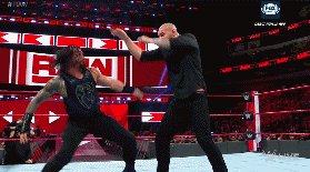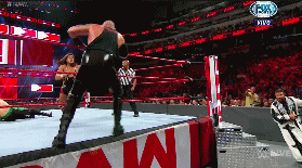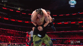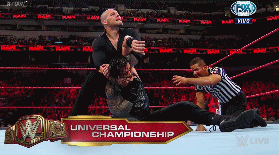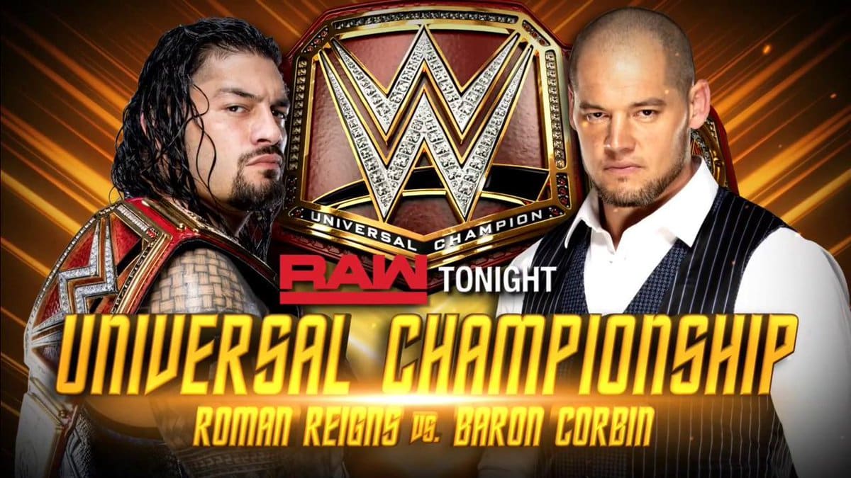 Reigns dice que, a pesar de lo que sucedió anoche, él sigue siendo el Campeón Universal. Y lanza un reto a Brock Lesnar para que salga a hacerle frente. Pero no sale Lesnar, sino Braun Strowman.