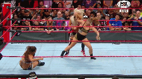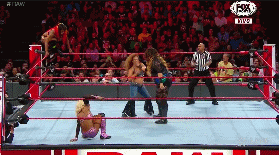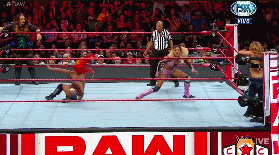 Después de algunos minutos, consigue relevar con Nia Jax, que entra como locomotora.