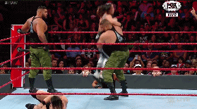 Y, con ayuda de Lashley, los plancha fuera del ring.