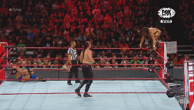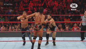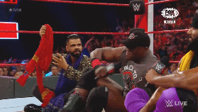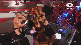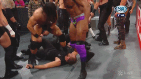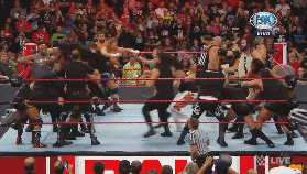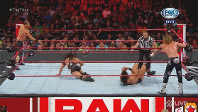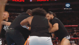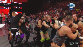 Pero la camorra llega por atrás. Todos los rudos de Raw llegan no para calmarlos, sino para atacarlos directamente.