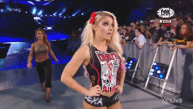 Cuando Elias va a cantar, llega Alexa Bliss, acompañada de Mickie James y Alicia Fox.