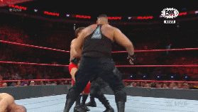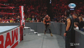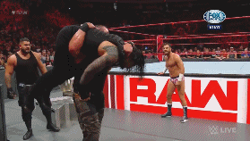 Hasta un powerslam abajo del ring se lleva Reigns.