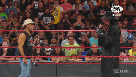 «Porque si eligieras volver del retiro, sólo enfadarías a alguien a mí. Y aparecería para volverte a retirar. Tú lo sabes; yo lo sé; ellos lo saben. Y hay otra cosa que tú sabes. En Melbourne, Australia, voy a volver a vencer a tu amigo, Triple H».