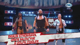 Braun Strowman llega al ring con los flamantes Campeones de Parejas Raw, Drew McIntyre y Dolph Ziggler. Desde que suena la campana, el monstruo deja ver su lado más violento.