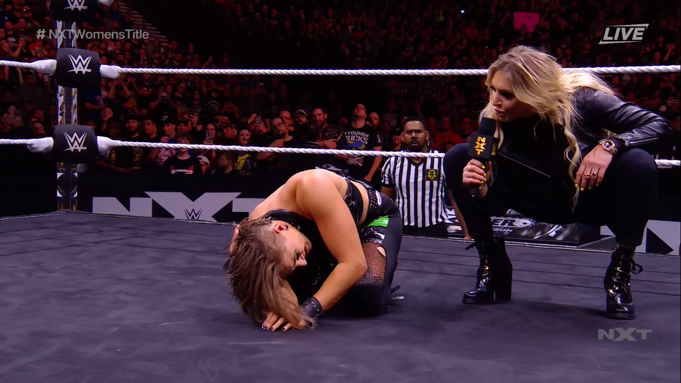 Ripley parece que no tuvo tiempo de celebrar ya que Charlotte Flair la ataca por detrás. «La Reina» toma el micrófono y le dice a Ripley: «Lo he pensado bien, nos vemos en Wrestlemania».