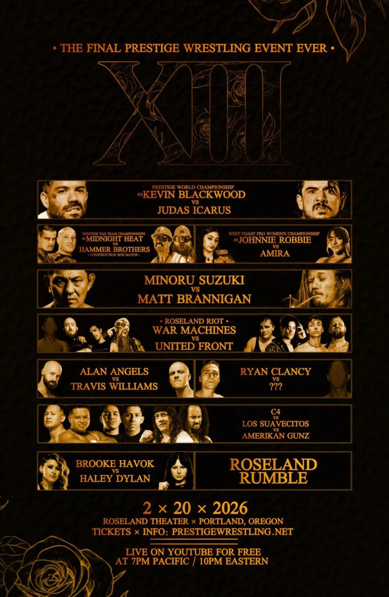Prestige Wrestling cerró su último evento con Roseland XIII desde el Roseland Theater en Portland, Oregon, un show cargado de acción y momentos emotivos, transmitido gratis por YouTube. El promotor William Quintana ya había anunciado que este sería el último evento de la empresa.