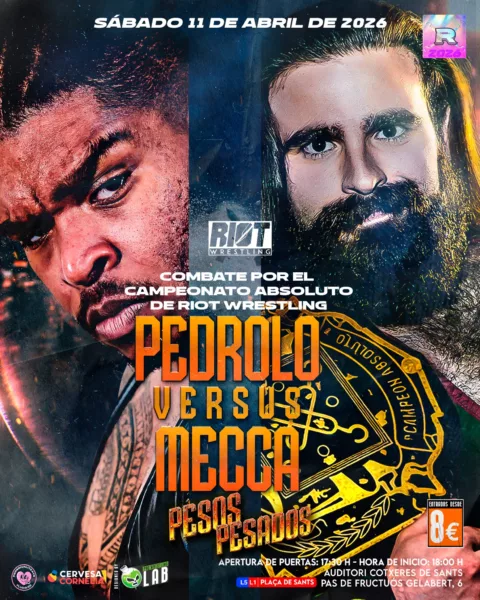 - TJ Charles y Gin El Libertario derrotaron a Legado (Carlos Vega y Carranza). Con algunas tácticas rudas, como escupir a Carranza cuando este buscaba un Suplex sobre Charles, o convertir todo lo posible la lucha en una de estilo «Tornado», los rudos se pusieron al volante. Con todo, hubo reacción técnica, y Legado estuvo cerca de salir triunfante con una patada sándwich sobre El Libertario, pero Charles rompió la cuenta Diving Headbutt mediante. Los rudos, contra las cuerdas, hicieron entonces de las suyas. Charles golpeó a Carranza valiéndose de un puño americano ante la ceguera del árbitro y seguidamente, «el Capataz» fue martineteado por El Libertario para la cuenta de tres, mientras Vega estaba dañado tras chocar contra un esquinero. ♠♠♠1/4 Vega y Carranza tomaron el micro y dijeron estar hartos de perder, disponiéndose a colgar las botas, hasta que Toro y Mechero les propusieron un último combate contra ellos. Toro se confesó fan de Carranza y esto terminó por convencer a los veteranos. Esta lucha tendrá lugar en el siguiente show de RIOT, Ni Oblit Ni Perdó (9 de mayo). CAMPEONATO ABSOLUTO DE RIOT: Pedrolo (c) derrotó a Mecca para retener el título. Duelo clásico de pesos «pesados» (en España se emplea tal adjetivo para referirse a pesos completos), donde Mecca, en modo rudo destructor, impuso su poderío en los inicios y fue capaz de tumbar a Pedrolo con un sólo Forearm, lanzarlo desde el stage sobre un puñado de miembros del staff o aplicarle un Superplex que casi hunde el ring, entre otras cosas. Cada «comeback» de Pedrolo parecía efímero, pero el campeón se repuso, resistió cual Ali contra Foreman, y luego de un Ripcord Lariat y su Discus Lariat, el «Big Dawg» cayó vía pin. Entretenido estelar, destacable también por su falta de ardides/interferencias, aunque por debajo del mejor nivel que Mecca suele mostrar en Francia. ♠♠♠1/4