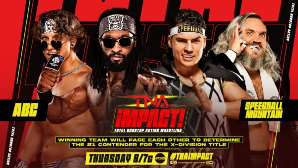 - Speedball Mountain derrotaron a ABC. Con esta victoria, Bailey y Seven se ganaron enfrentarse entre sí por una oportunidad al Campeonato de la División X. Mustafa Ali, el monarca, estuvo en la mesa de comentarios. Bailey ya portó dicho título, ¿por qué no posicionarlo hacia el Campeonato Mundial TNA?