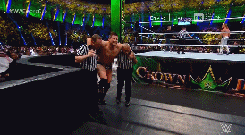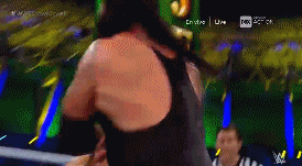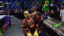 Luego, el propio Triple H recibe un chokeslam sobre la mesa de comentaristas en inglés.