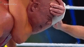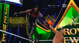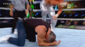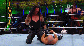 Cuando Kane está por aplicar chokeslam a HBK, éste logra salirse y le impacta la bota en la cara. La caída de Kane rompe la llave del Taker.
