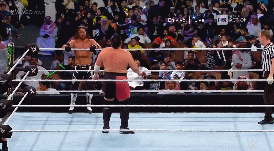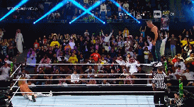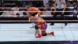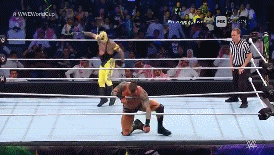 Y sorprende con su primer movimiento de la noche que no es el Super Kick, un moonsault.