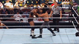 Rollins intenta meterle emoción a la lucha, y hay un intercambio de toques de espaldas.