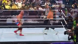 Randy Orton quiere acabar la lucha con RKO, pero Mysterio lo atrapa y se lleva la lucha con una sorpresiva rana.