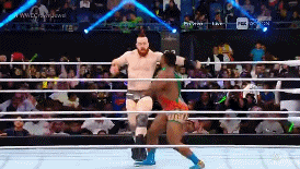 Por fin puede relevar Kingston después de un rato. Big E entra con todo.