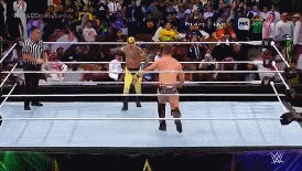 No le da tiempo de celebrar al mexicano, pues Orton le aplica de inmediato un RKO.