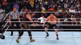 En una de esas, azota al Undertaker contra un poste.