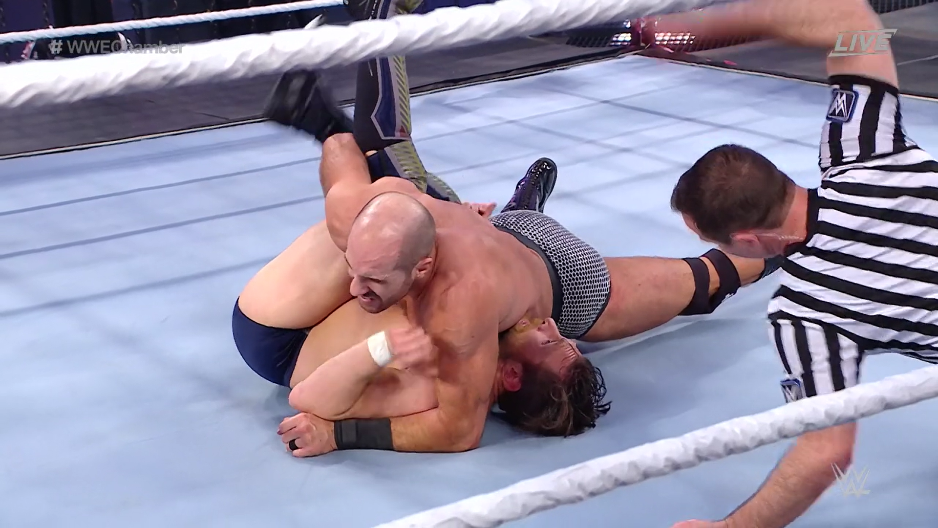 Ahora Bryan intenta una llave sobre Cesaro a ras de la lona, pero este resiste y lo levanta, aunque Bryan lo vuelve a llevar a ras de la lona. Cesaro logra un toque de espaldas.