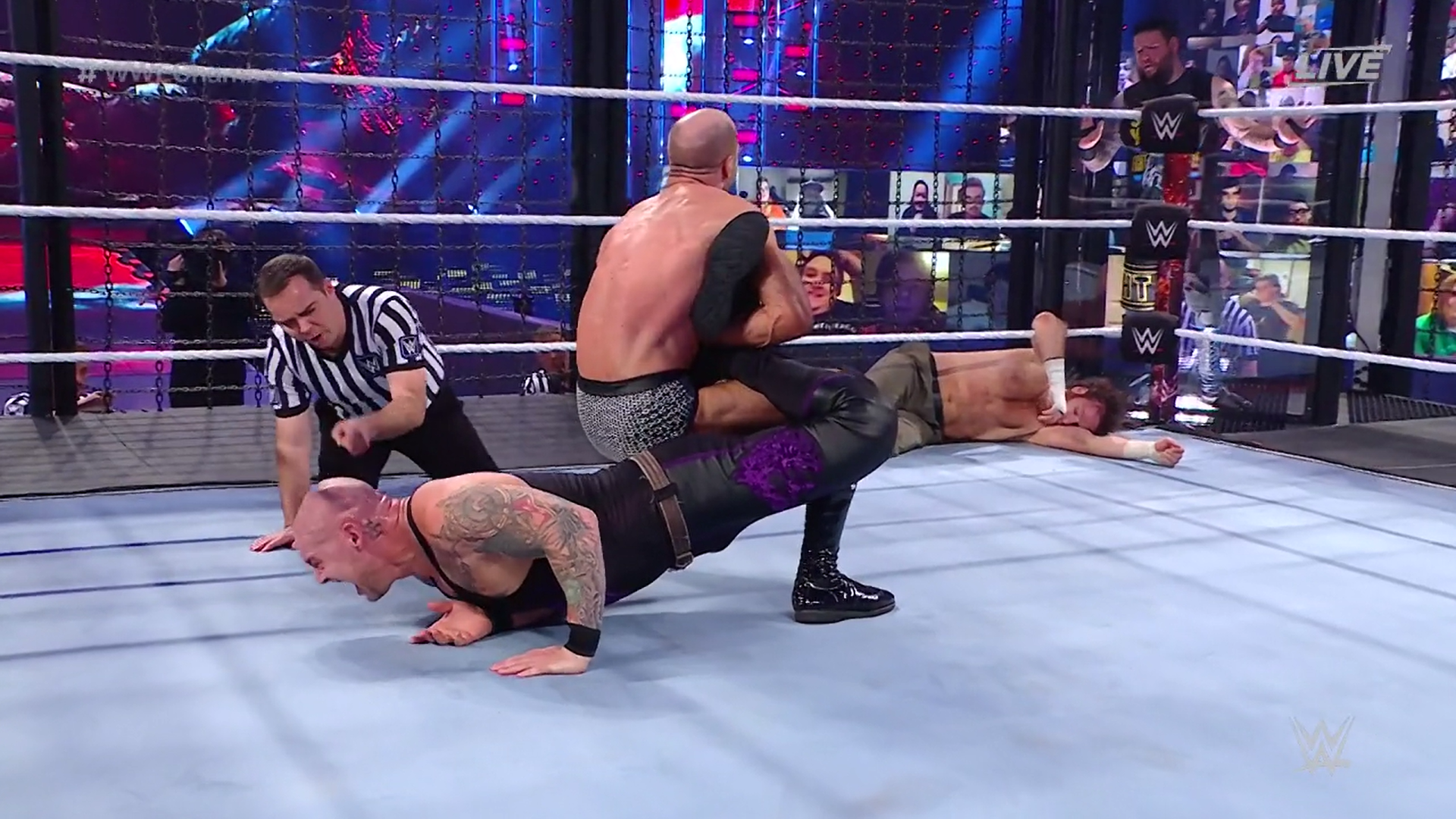 Corbin estrella a Bryan y a Cesaro contra los compartimientos de las otras Superestrellas. Discute brevemente con Sami Zayn. Corbin luce en control aprovechando la ventaja de la estructura.