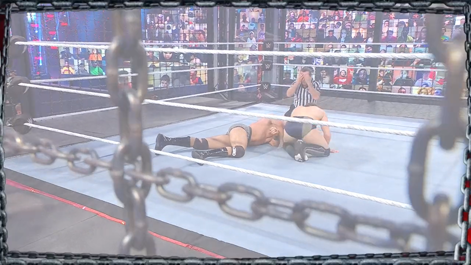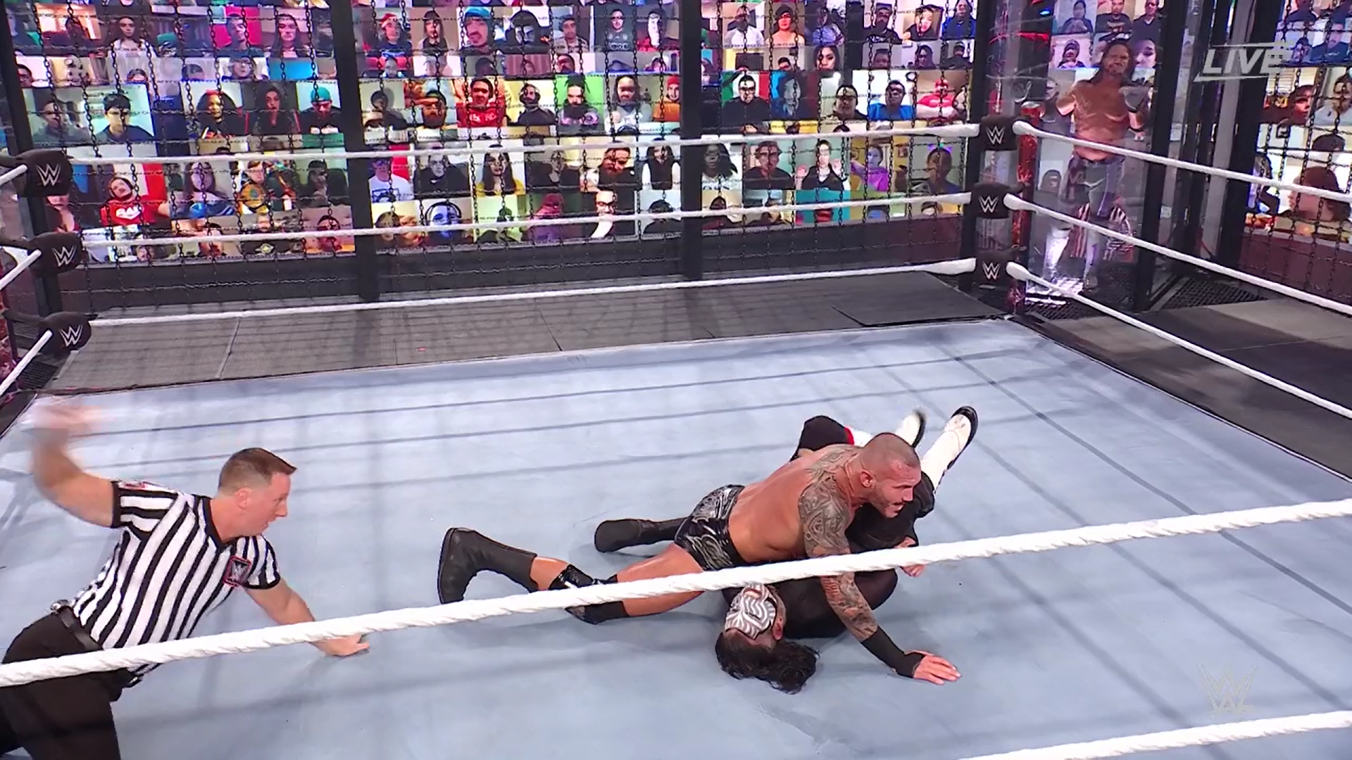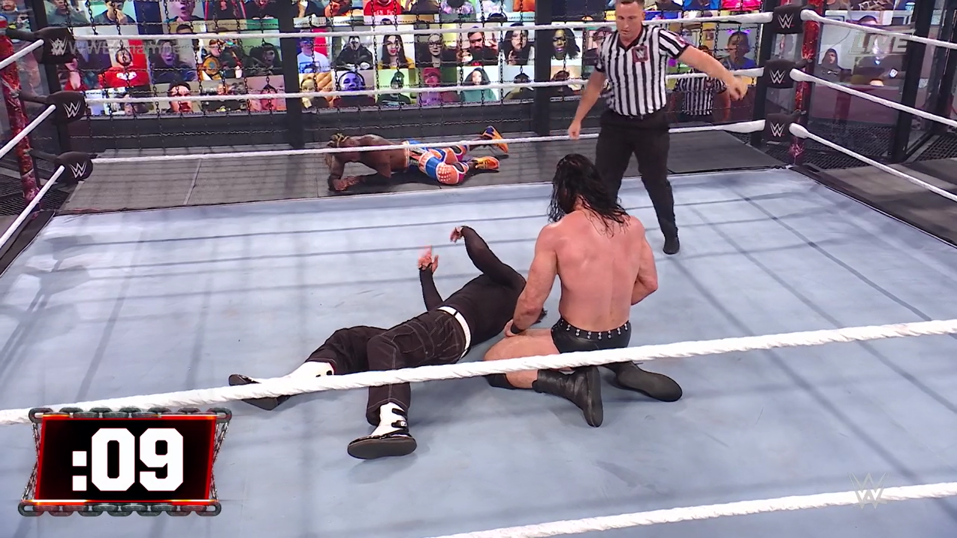 Suena la campana y The Viper es quien controla la situación y ahora aprovecha el plexiglas para castigar a Jeff, pero este responde con una ráfaga de golpes.