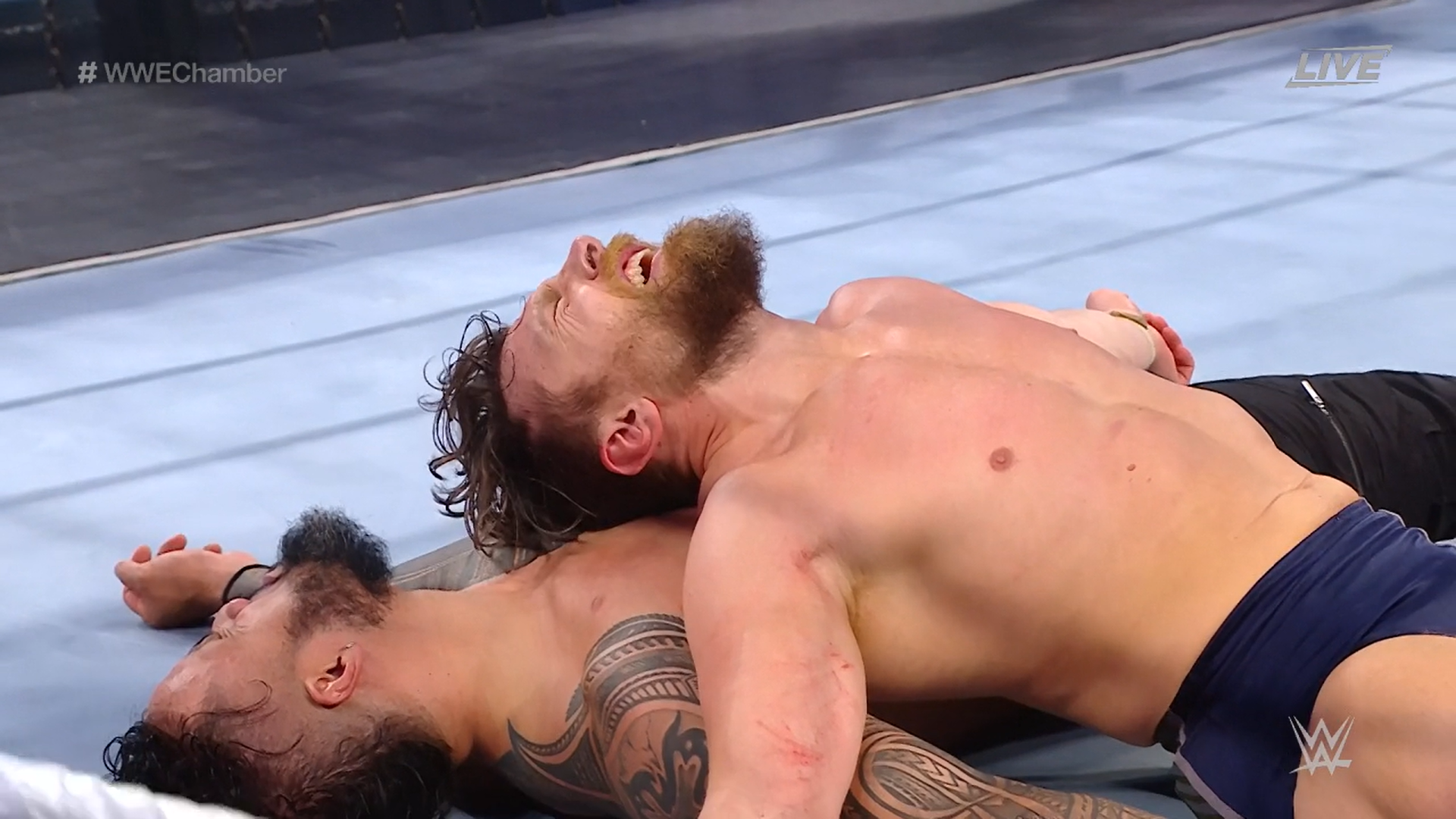 Mientras Sami salía, Jey Uso sorprende a Owens y le atora la puerta metálica con el brazo de Owens, generándole dolor. Tras conectarle varios Superkicks, Jey remata a Owens con un Uce Splash y lo remata con la cuenta de tres.