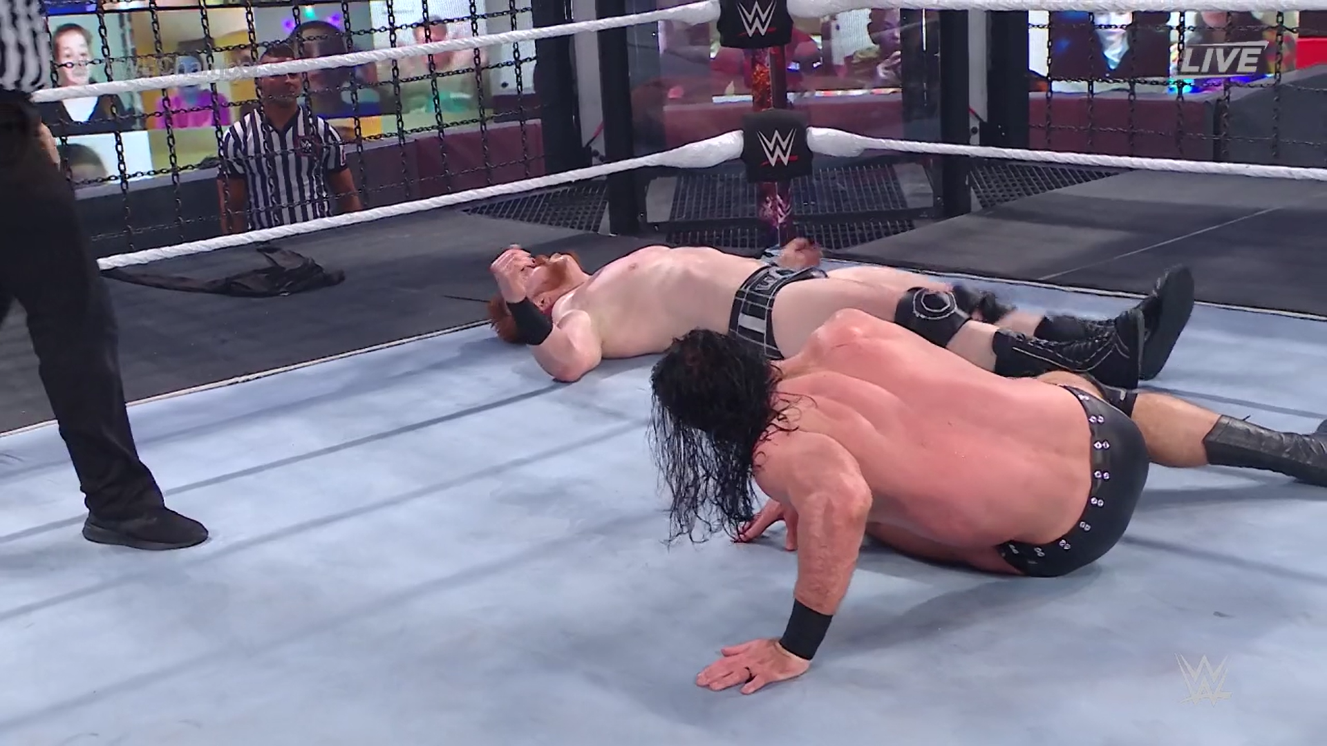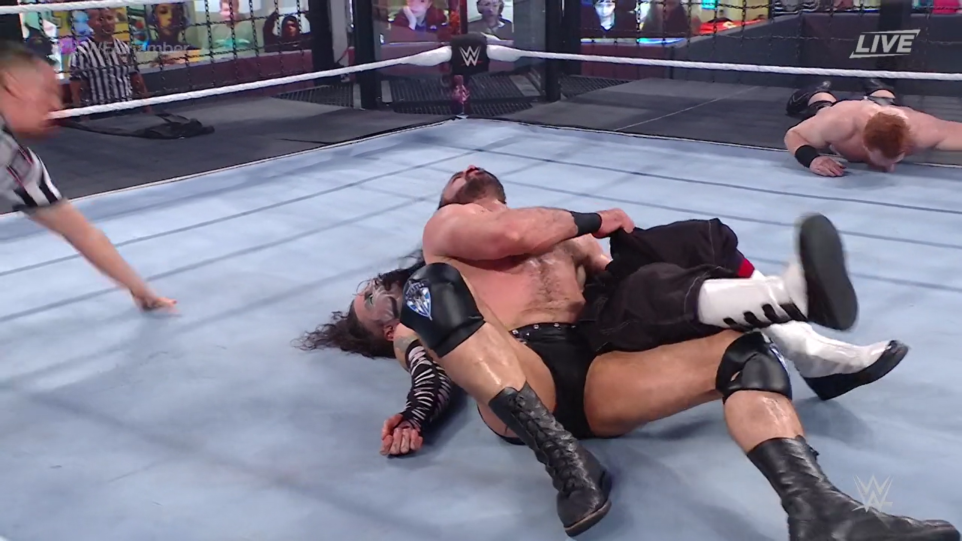 Kofi y Jeff interfieren, pero McIntyre y Sheamus se deshacen de ellos y siguen riñando entre sí. Styles regresa y trata de poner orden atacando a Kofi. En el área de la estructura metálica, Sheamus pisotea a McIntyre.