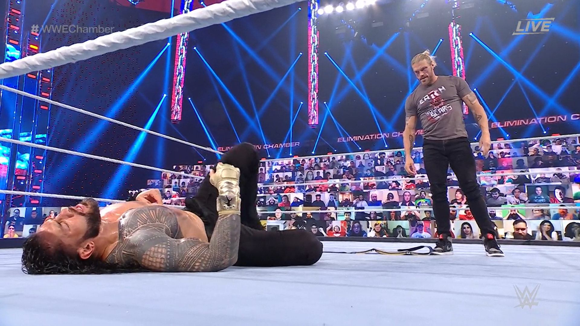 Y con esta imagen, Elimination Chamber sale del aire. Era el momento esperado por muchos, aunque el abucheo ahora es general.