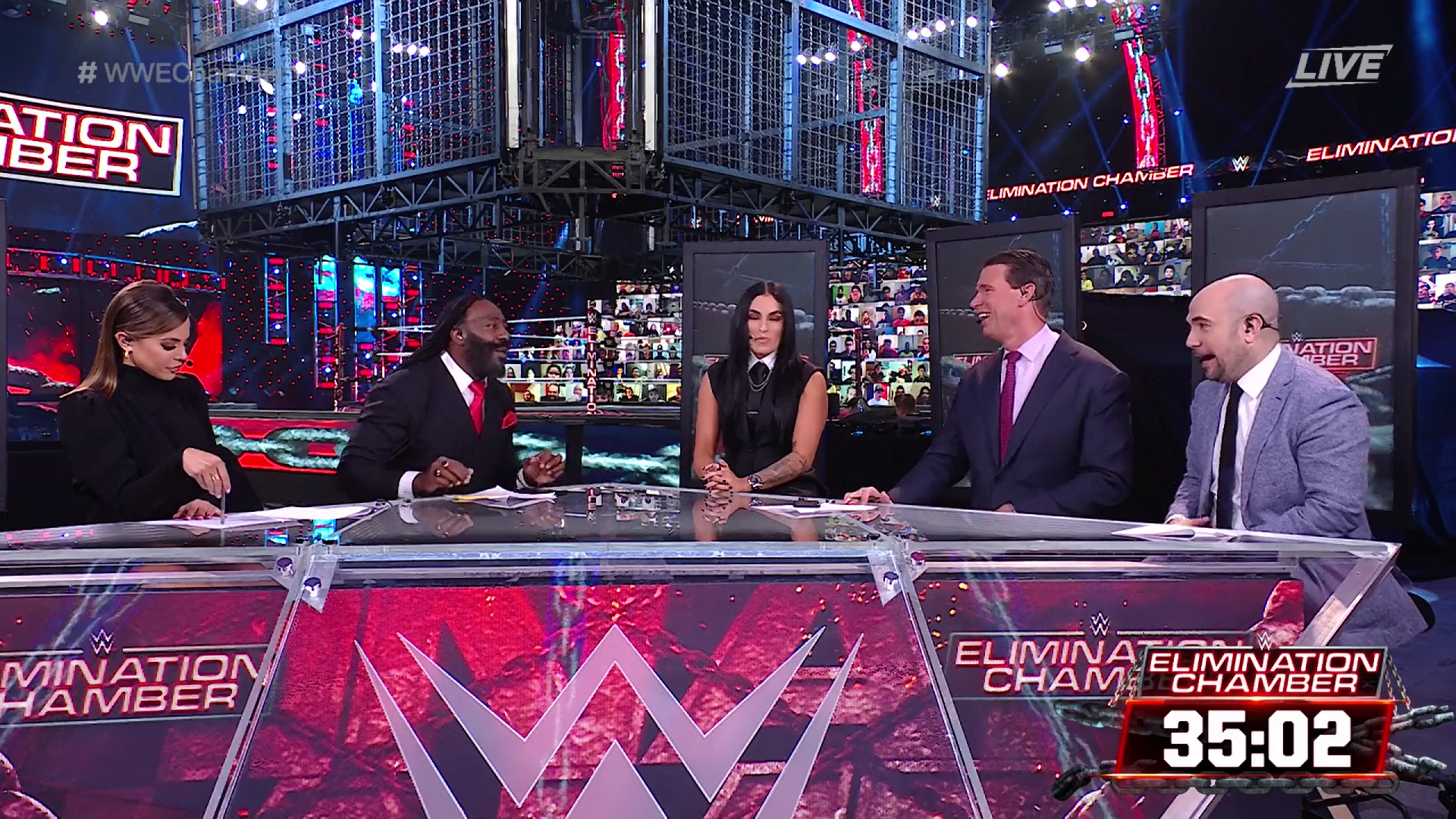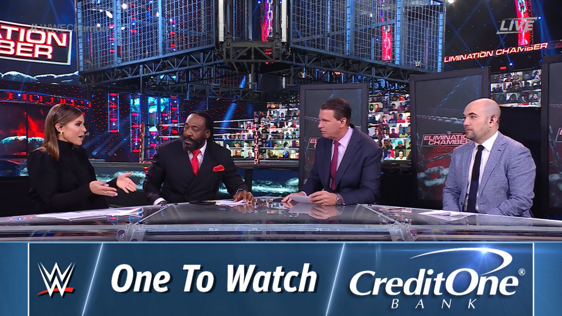 Se da inicio al Kickoff de WWE Elimination Chamber 2021. Charly Caruso está en el panel del kickoff junto a Booker T, JBL y Peter Rosenberg.