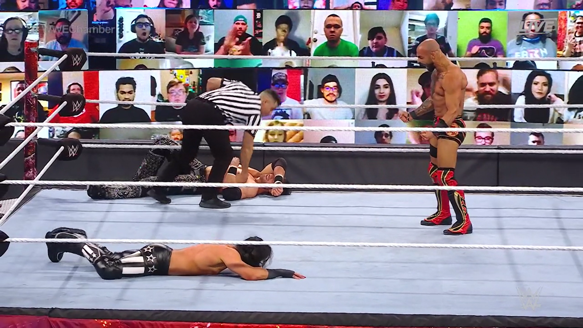 Suena la campana y Ricochet saca a Mustafa Ali del ring, mientras que Elias y Morrison lo castigan, aunque logra sobreponerse. Mustafa Ali lo sorprende con una cuenta de dos y ambos se montan en un intercambio. Morrison y Elias regresan y se dan todos contra todos.