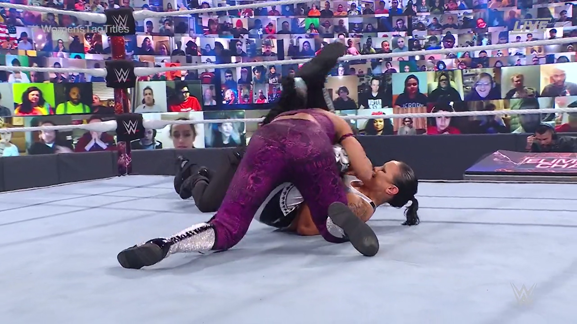 Las campeonas siguen intercambiando relevos y logrando varias cuentas de dos sobre Sasha, y eventualmente atacan su compañera; sin embargo, Sasha logra conectar varias cuentas de dos sobre Shayna.