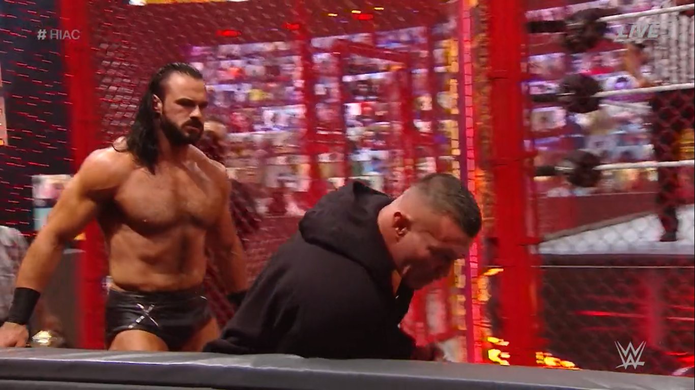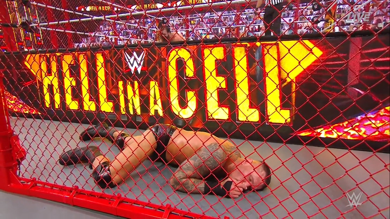 Randy Orton festeja con el título en mano mientras abandona el ring. McIntyre lo mira fijamente y con esta imagen Hell in a Cell sale del aire.