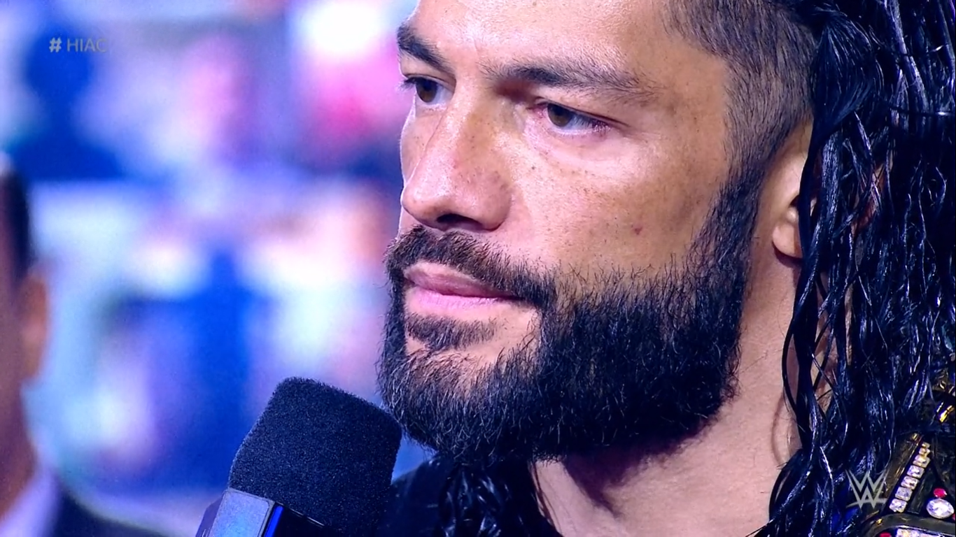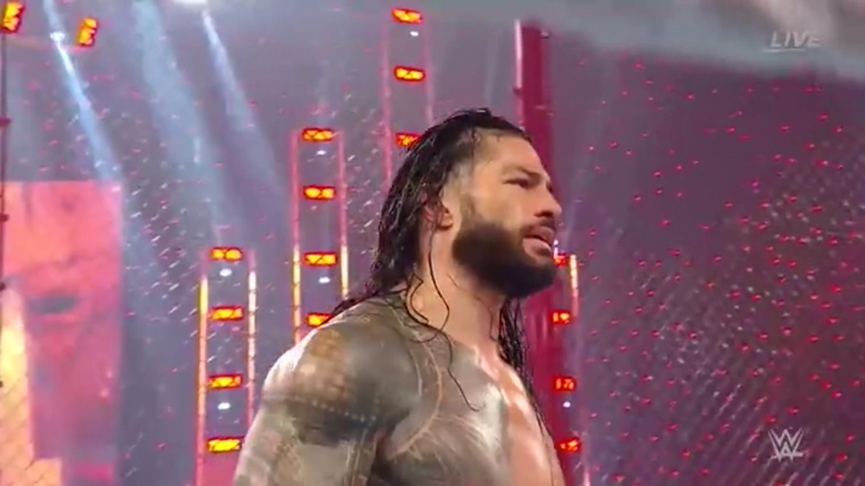 Reigns amaga con salir y cierra la puerta y empieza a lanzar cosas al ring donde están algunos oficiales todavía. Roman utiliza la escalera metálica y la pone sobre Jey y lo vuelve a sermonear y le dice que «solo» tiene que reconocerlo.