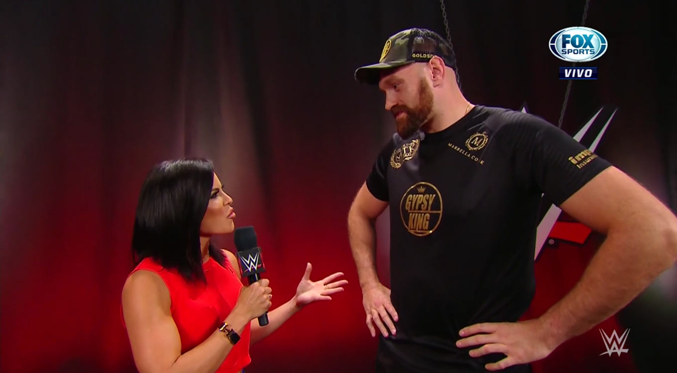 Tyson Fury es entrevistado. Niega estar provocando a Braun Strowman. Lo que quiere es que el monstruo entre hombres se disculpe con él.