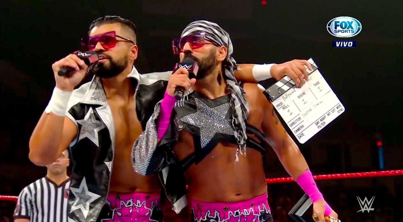 Los Bollywood Boyz llegan al ring. Dicen que ellos deben ser los primeros elegidos en el Draft, así que aceptan el reto de Aleister Black.