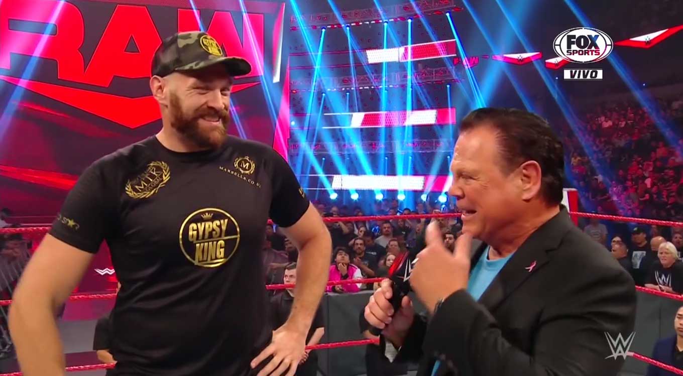 Jerry Lawler lo entrevista. Fury vuelve a decir eso de las disculpas, lo cual no le queda a alguien que se gana la vida dando puñetazos.