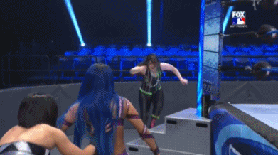 Todo parece brillante para Alexa y Nikki, pero ésta se distrae cuando la rubia es atacada abajo del ring por Asuka.