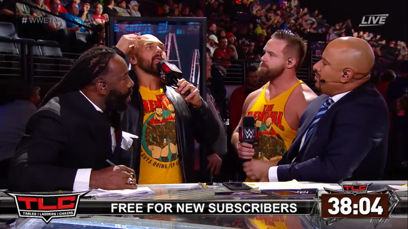 The Revival aparece junto al panel y prometen ganar el Campeonato de parejas esta noche en su lucha contra The New Day, y también exigen que les entreguen sus anillos del Salón de la Fama.