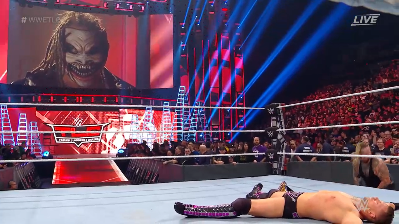 Miz continúa el castigo, esta vez afuera del ring, arrojando a Wyatt sobre las escaleras metálicas. Wyatt solo se ríe y no parece sentir dolor. Luego Miz falla una embestida y es sorprendido por Wyatt quien lo arroja contra las barreras, seguido de un Sister Abigail. Wyatt regresa primero al ring, y Miz ingresa después antes de la cuenta de 10, pero Wyatt lo sorprende con otro Sister Abigail para la cuenta de 3 definitiva.