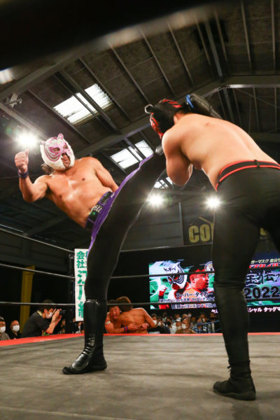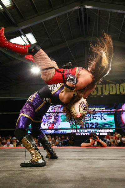 La impresionante luchadora enmascarada Tiger Queen logró una victoria individual más al superar a Hibiscus Mii. Esta fue la primera aparición de Tiger Queen en Osaka.