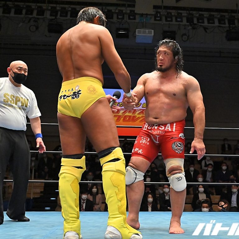 4. Daisuke Sekimoto derrotó a Hayato Mashita (11:17) con un German Suplex Hold.