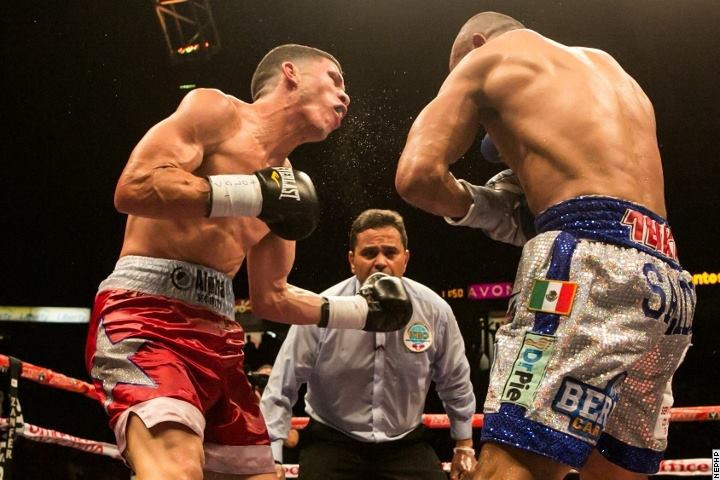 En esta ocasión, le tocaría enfrentarse a Román Martínez, el «Rocky», quien luego de perder el cinto súper pluma ante Mickey García, precisó de una pelea para regresar a una pelea titular. Venció a Herbert Quartey en 2014 y luego obtuvo la oportunidad de enfrentar a Salido.
