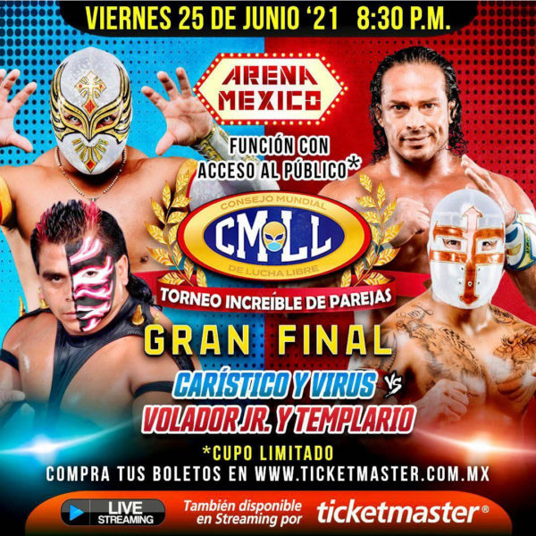 Es así, que este viernes 25 de junio, la Arena México verá en el turno estelar el duelo donde Carístico y Virus, se enfrentarán a Volador Jr. y Templario. Los dos equipos tienen luchadores con diferentes estilos, pero que se han sabido complementar.
