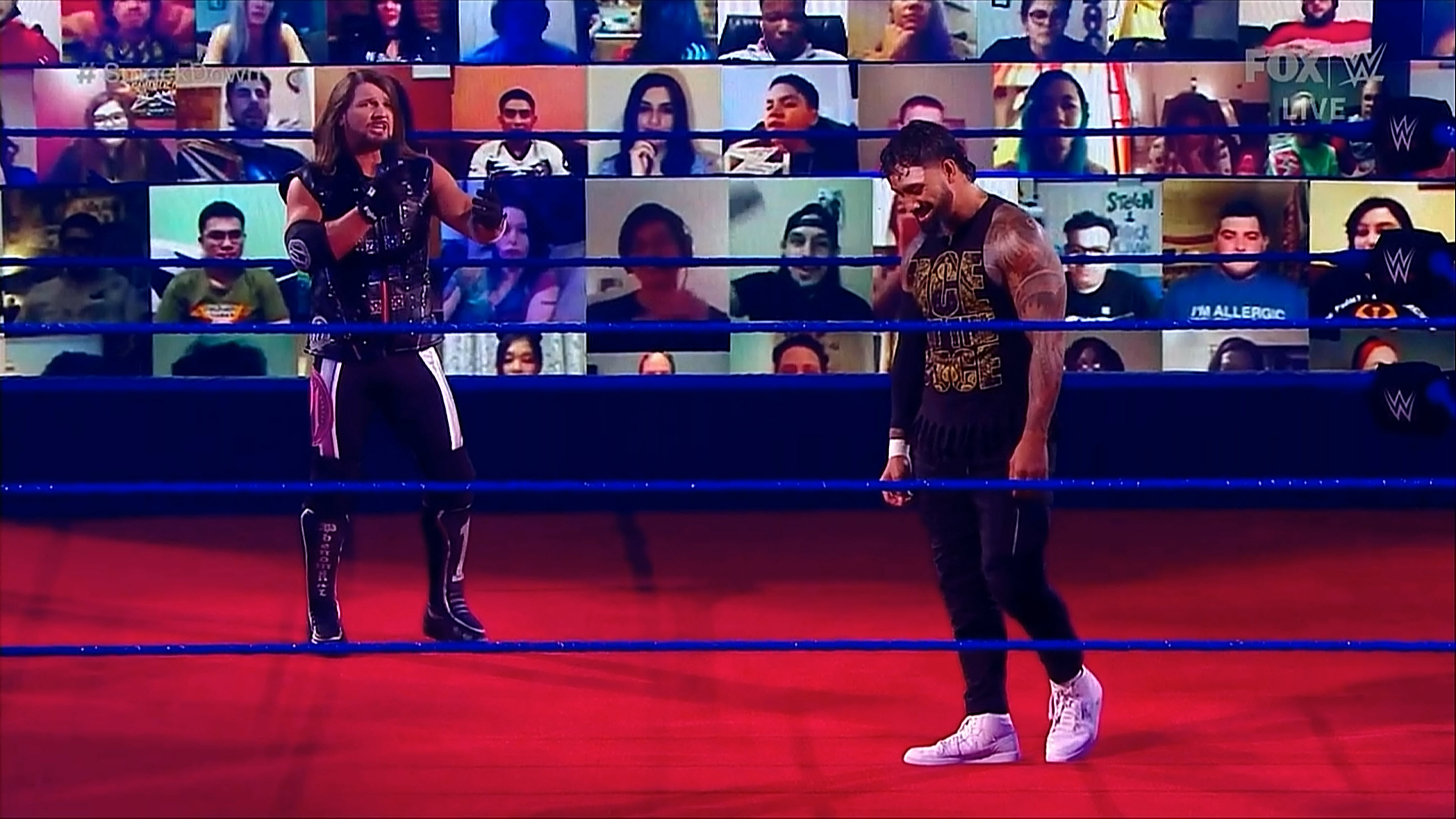 Aparece AJ Styles para encarar a Jey Uso y dice que no le importa quién se sienta al final de la mesa, pero dice que sí le importa a AJ Styles, y por eso, le ofrece tomar su lugar para enfrentarse a Roman Reigns.