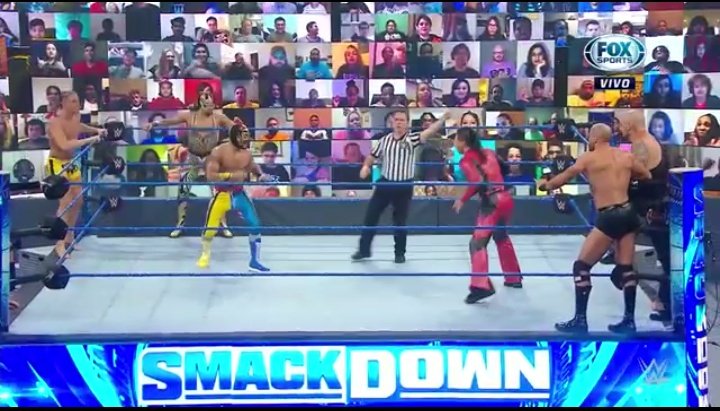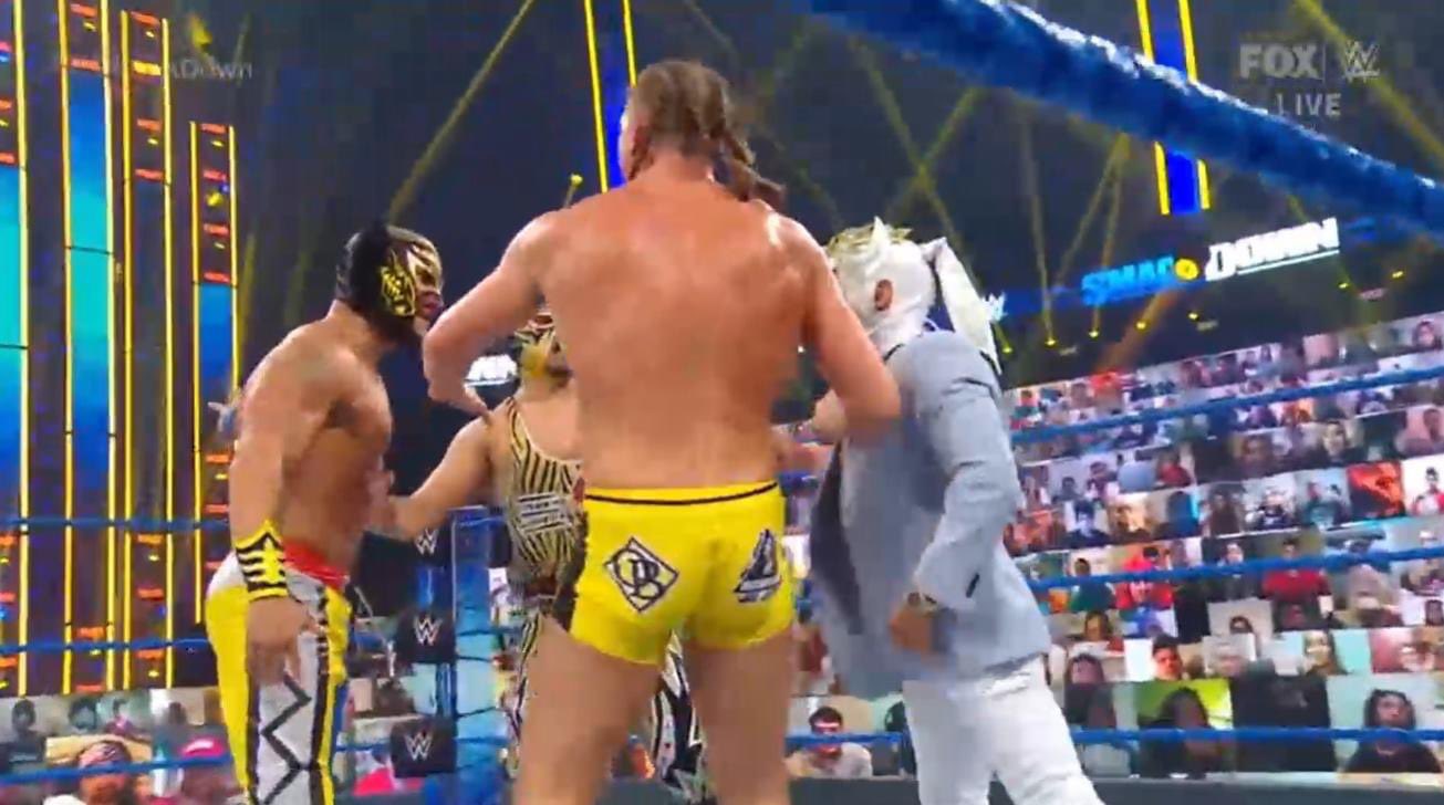 Lince Dorado ingresa y le aplica un Stunner a Nakamura. Corbin cubre a Riddle para lograr una cuenta de dos que rompe Lince Dorado. Se arma el relajo en el ring y Gran Metalik ataca a Nakamura y Corbin con un tope.