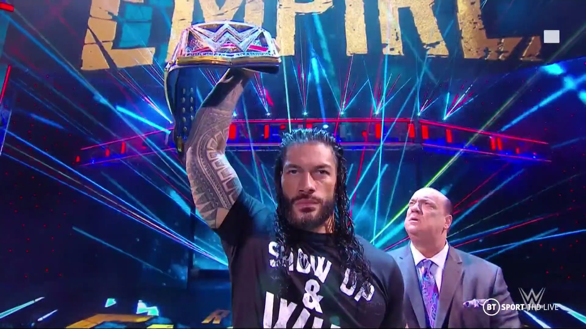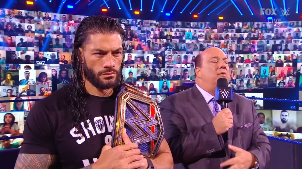 Paul Heyman toma el micrófono y dice que está un poco nervioso, y dice que ha conocido a Reigns y su familia desde que nació y que ha estado esperando este momento, momento para declararlo como el Jefe Tribal no solo de SmackDown, sino también de WWE y el Universo WWE.